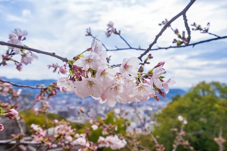 도시 중심 언덕 위에 자리 잡은 마쯔야마 성은, 봄이 되면 성 주변의 넓은 공원과 성벽 아래에 수많은 벚나무가 꽃을 피웁니다. 성 위에 올라가면 분홍빛 벚꽃 사이로 마쓰야마 시내와 세토 내해의 풍경이 펼쳐지는데, 고성과 봄 풍경이 함께 만들어내는 장면은 일본 특유의 정취를 제대로 느끼실 수 있습니다.